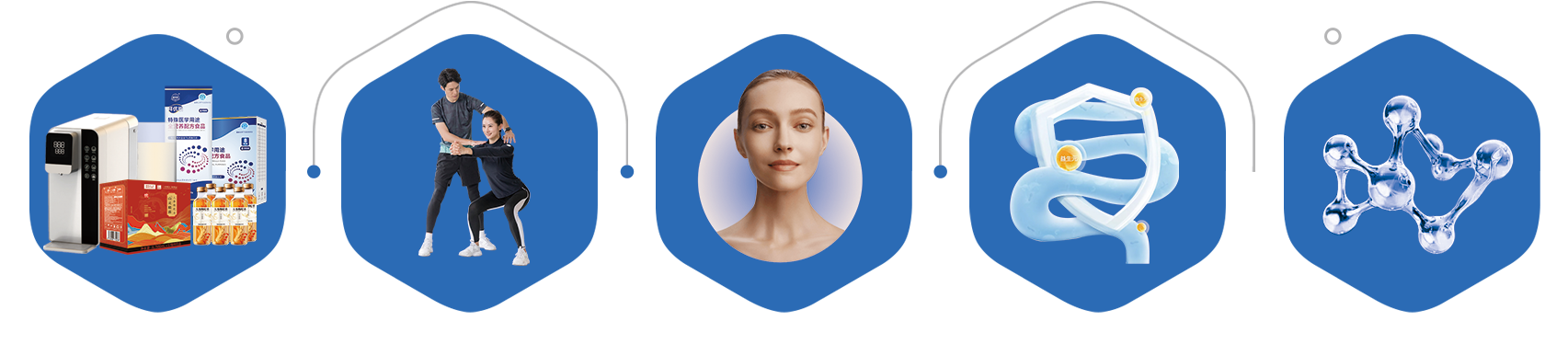 3.融合生命之水、生命之光、生命之氧、生命之源、生命之旅立体健康干预理念为用户提供以管体重、调五高、抗衰老为核心的个性化的健康管理方案。
